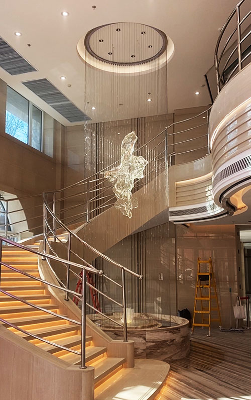 拉線水簾在室內(nèi)中庭等空間更能顯示其唯美靜謐的質(zhì)感。室內(nèi)外景觀的營造對其也有了越來越多和豐富的運用。