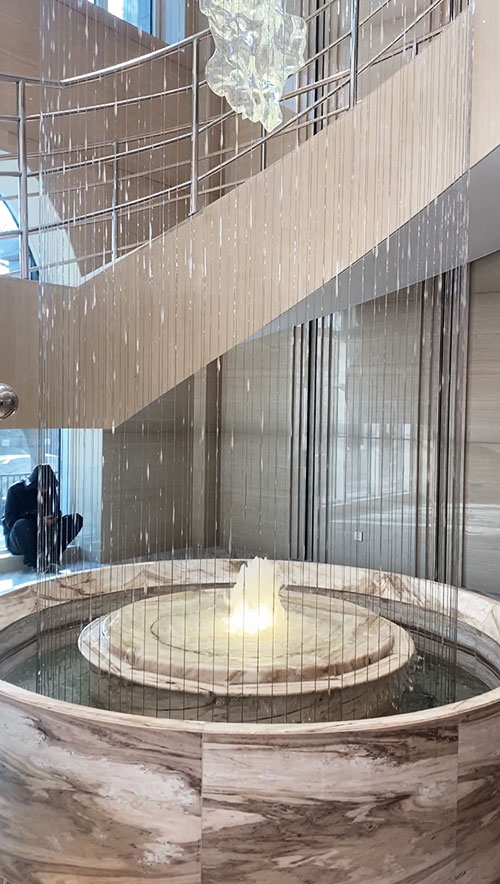拉線水簾在室內(nèi)中庭等空間更能顯示其唯美靜謐的質(zhì)感。室內(nèi)外景觀的營造對其也有了越來越多和豐富的運用。