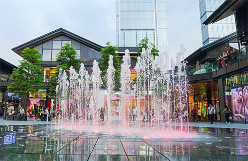 還有一個(gè)干噴泉,一般放在地下,通過石頭等表面裝飾產(chǎn)生不同的效果。音樂噴泉是典型的干噴泉,在音樂的配合下,水從地下噴出。