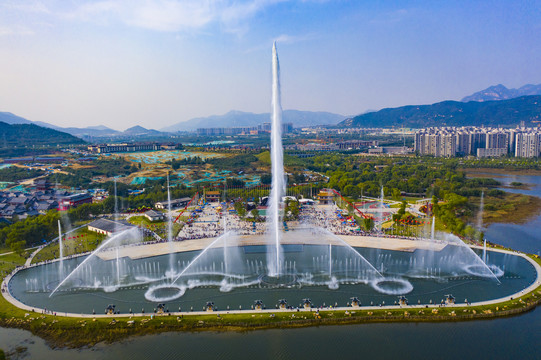 對(duì)拱外形猶如彩虹,其氣勢(shì)尤為強(qiáng)悍,在變頻器的控制下,似連綿不絕的波濤,配上樂曲,給欣賞者柔美的感受,標(biāo)志著吉祥的氛圍。